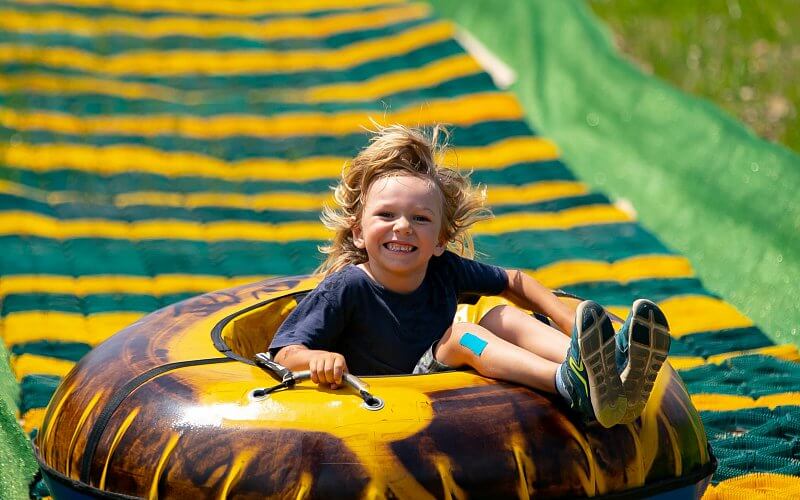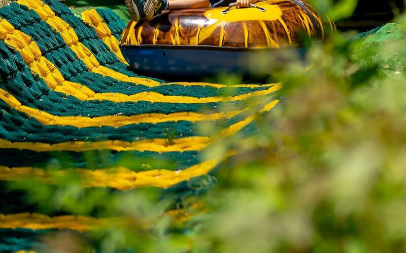 Прямая — 120 метров подойдет малышам от 3 лет до 6 лет, и «лесная» — 200 метров с поворотами — ребятам от 6 лет и взрослым (до 80 кг).
